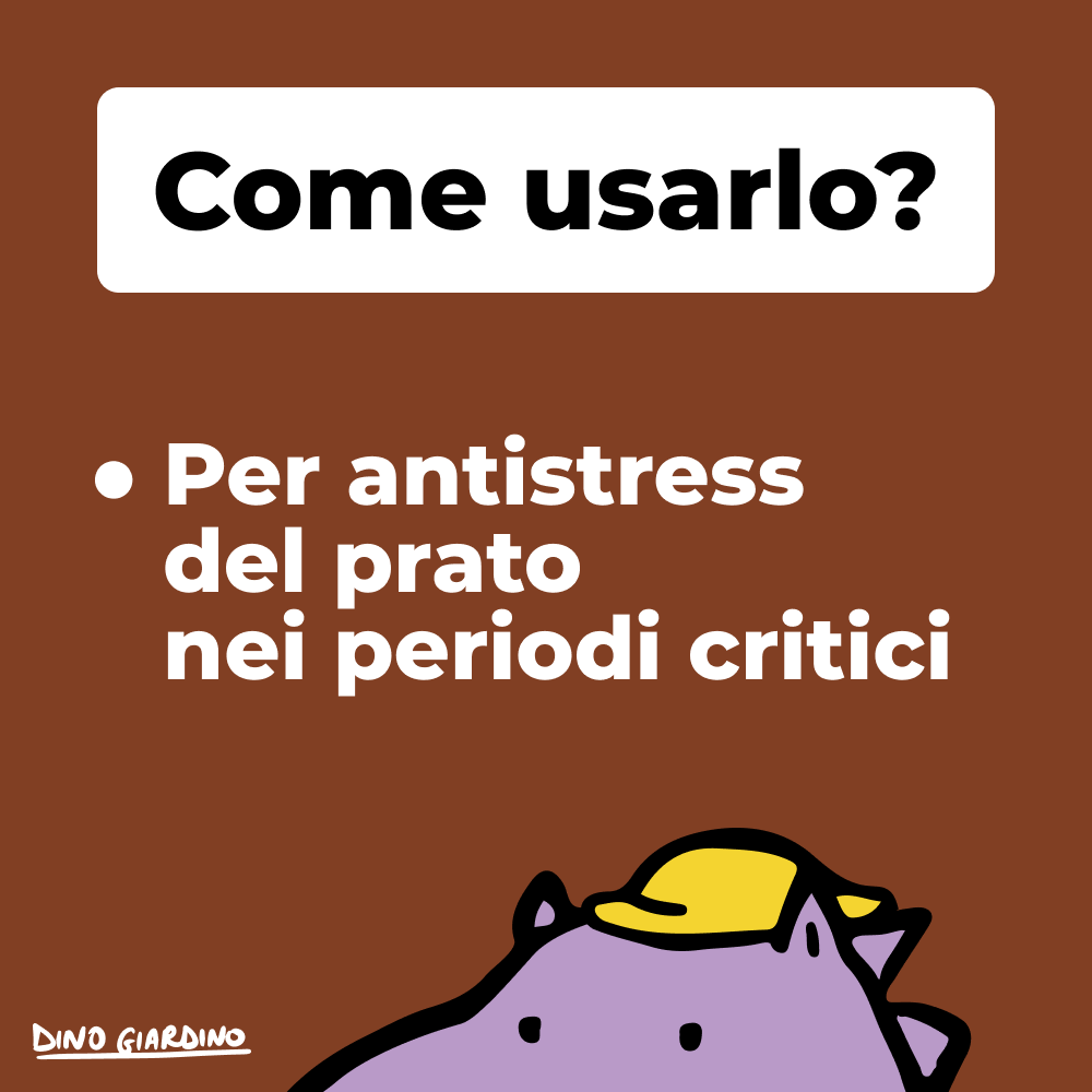 Dino utilizza questo fertilizzante in estate ed inverno, al dosaggio di 30-50 gr/mq, per superare gli stress termici (Estate/Inverno).