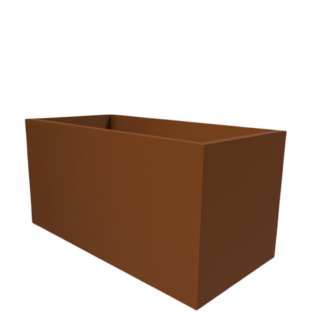 Fioriera in acciaio Corten pretrattato dimensione 100×50 realizzata in lamiera da 1,5 mm (spessore 2 mm per le fioriere alte 80 cm) con tiranti e fori per drenaggio con apposito proteggi foro.