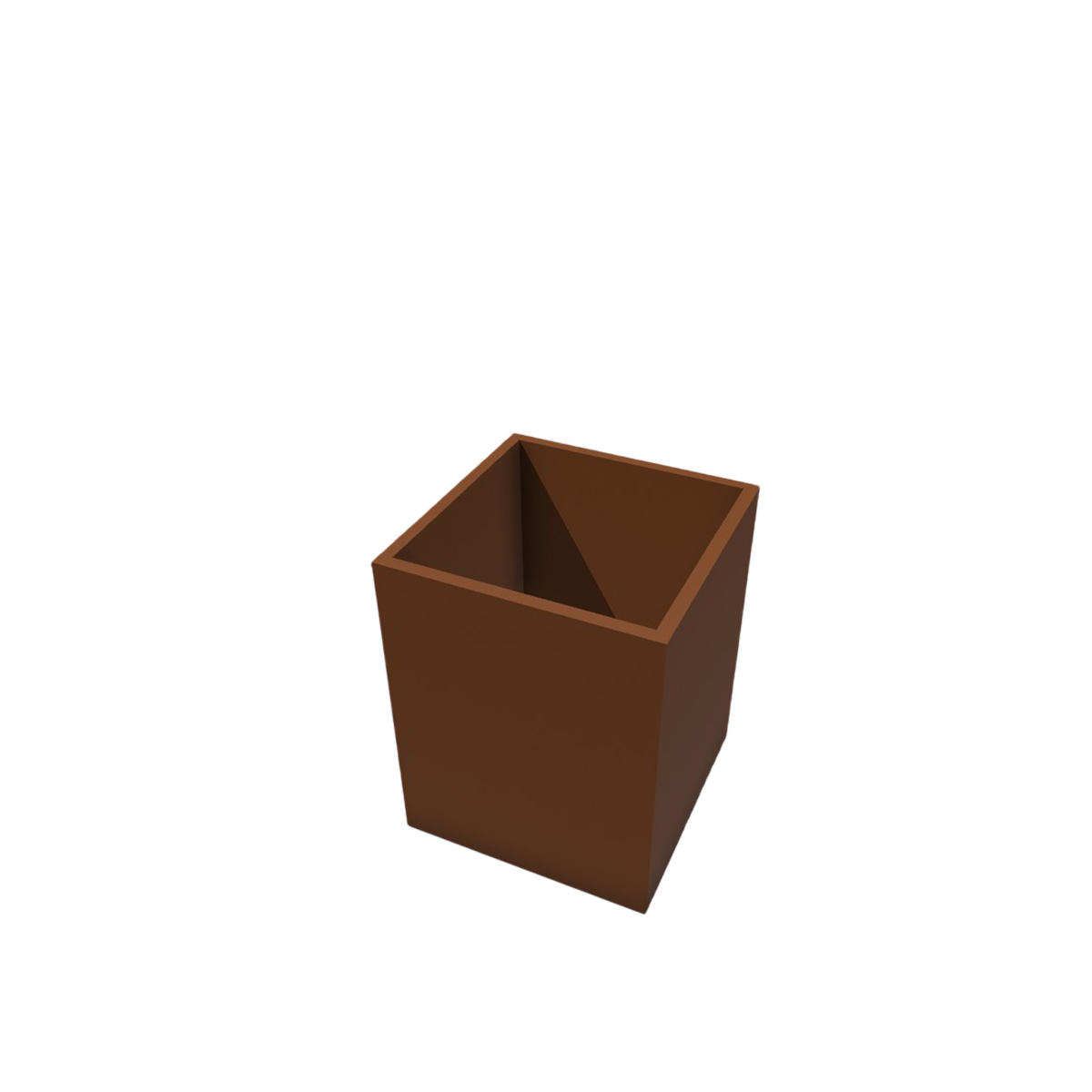 Fioriera in acciaio Corten pretrattato dimensione 40×40 realizzata in lamiera da 1,5 mm (spessore 2 mm per le fioriere alte 80 cm) con tiranti e fori per drenaggio con apposito proteggi foro.
