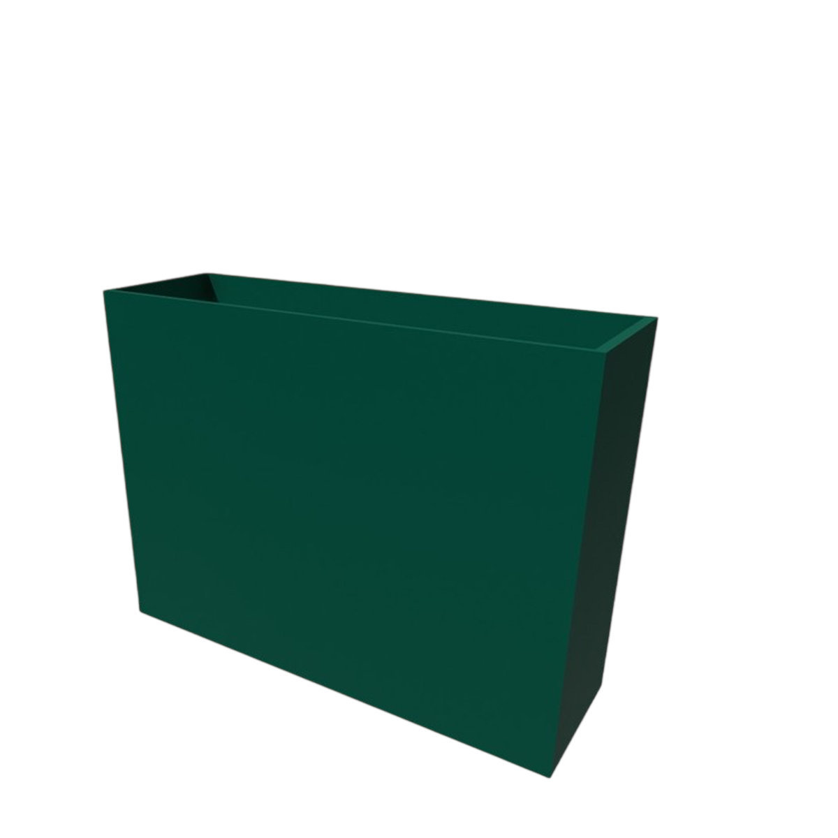 Fioriera 80×25 realizzata in lamiera in acciaio zincato da 1,5 mm (spessore 2 mm per le fioriere alte 80 cm) e verniciata a polveri con tiranti e fori per drenaggio.