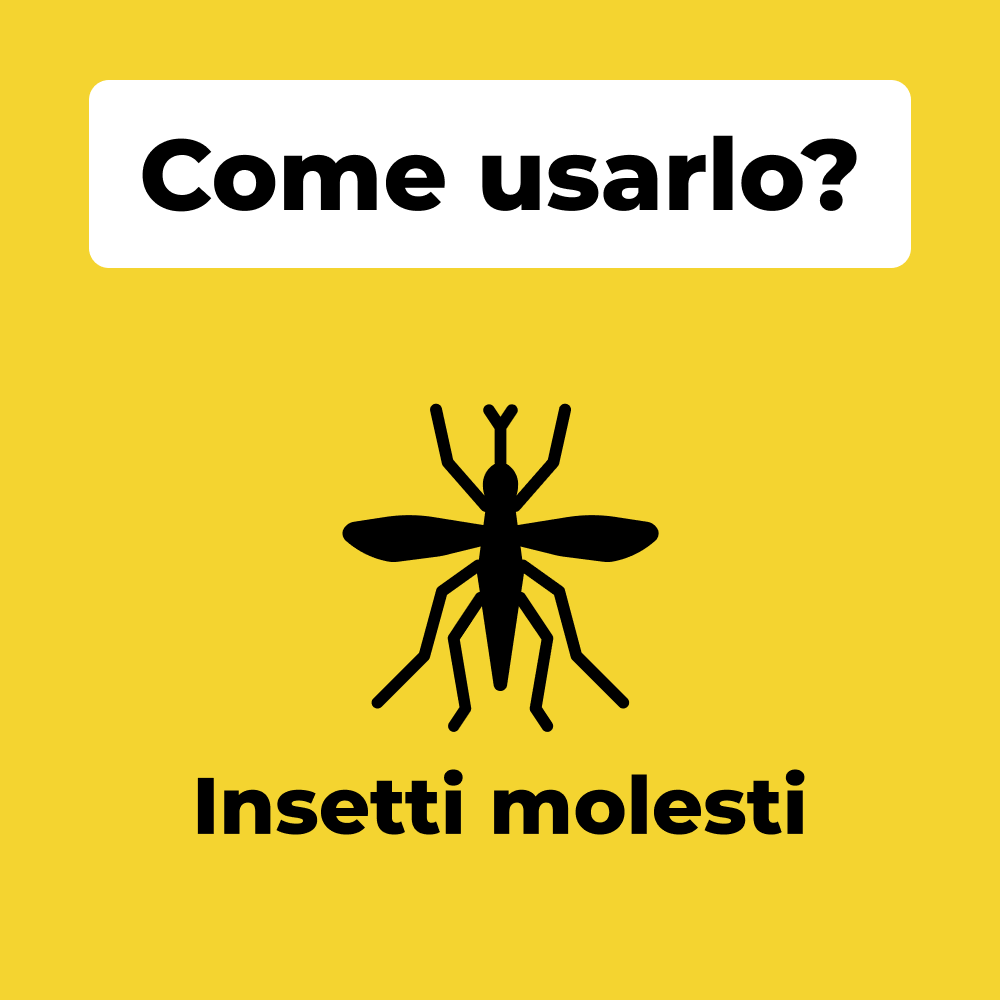 Diluire 20 grammi di prodotto in 1 litro d’acqua e nebulizzare sulle superfici esterne interessate dalla presenza degli insetti molesti, ripetere il trattamento ogni 7-10 giorni.