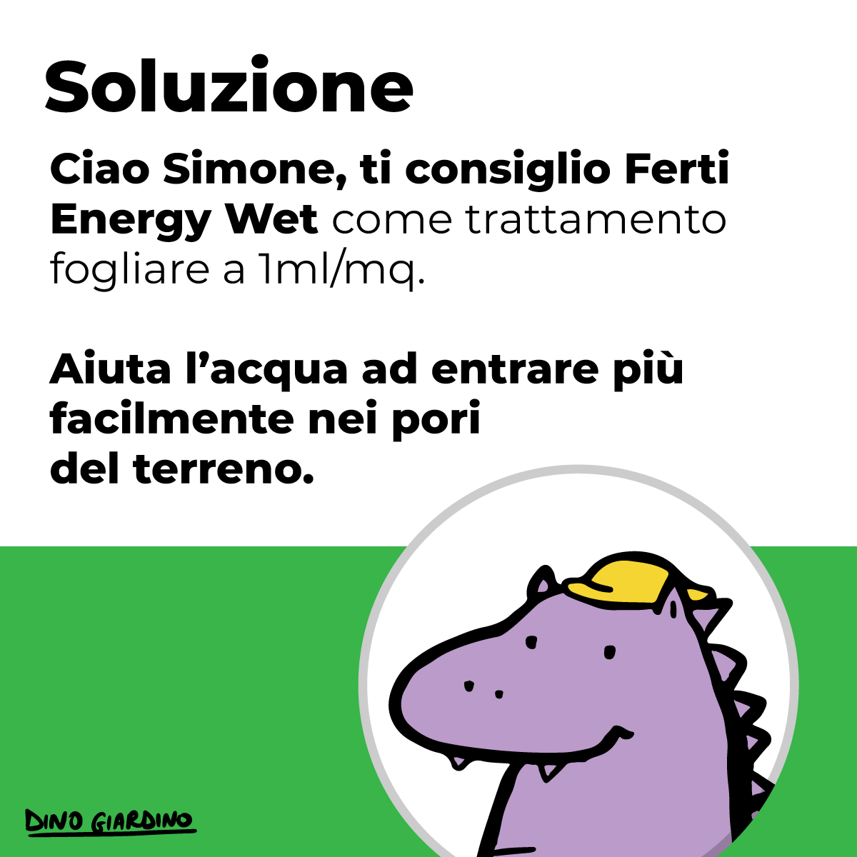 Ciao Simone, ti consiglio Ferti Energy Wet come trattamento fogliare a 1ml/mq. Aiuta l’acqua ad entrare più facilmente nei pori del terreno.
