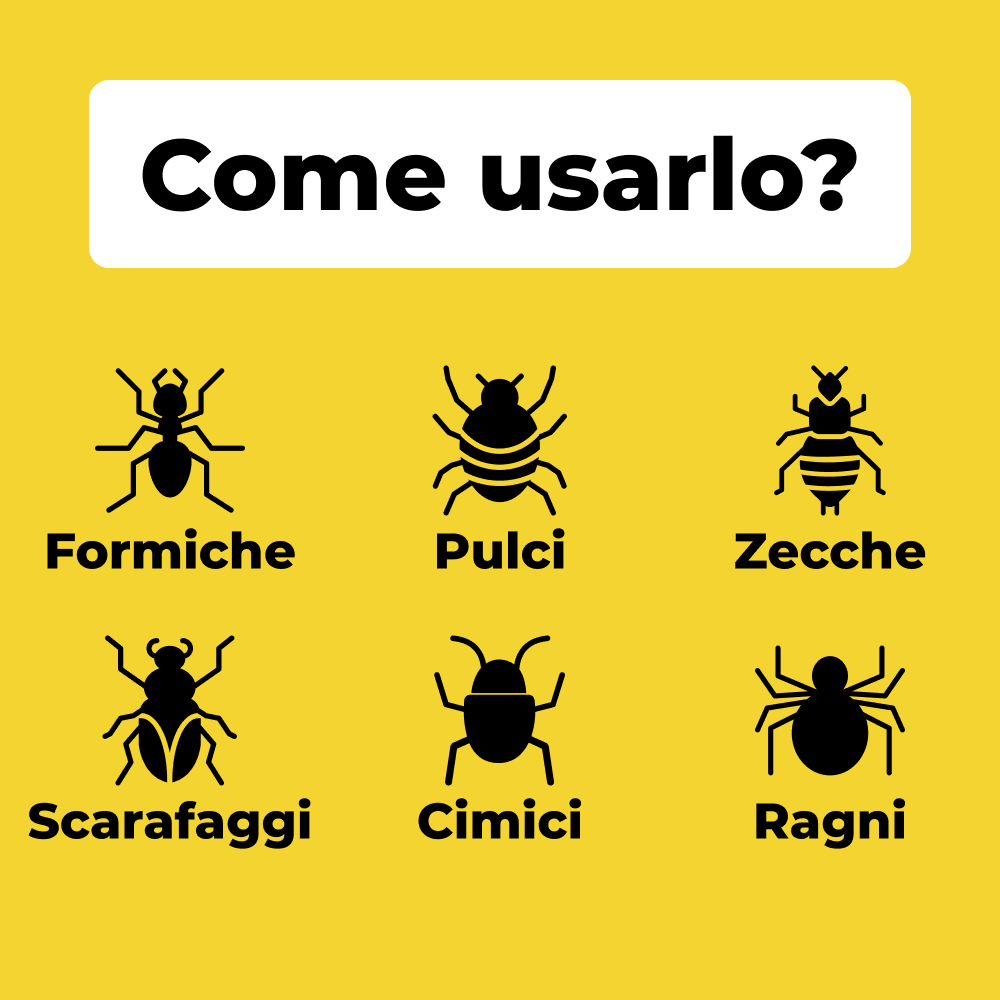 WACIP® HP è un prodotto destinato alla lotta contro insetti volanti quali zanzara comune (Culex pipiens), zanzara tigre (Aedes albopictus), mosche (Musca domestica), cimici (Nezara viridula, Halyomorpha halys), e insetti striscianti quali blatte di piccole dimensioni (Blattella germanica), pulci (Ctenocephalides felis) e zecche (Ixodes ricinus).